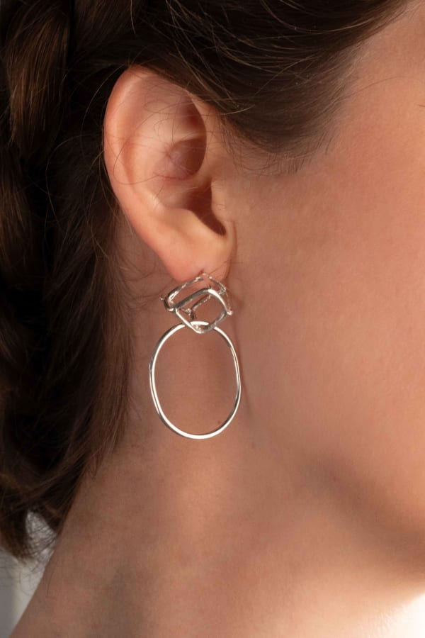 These everyday earrings are a unique and striking variant of the Cube collection. Their architectural design combines uneven but proportionate shapes of cubes and circles, creating an asymmetry that catches the eye. Despite their small size, these 925 silver earrings have a great presence and personality. Their comfort makes them perfect to wear all day, while their avant-garde style will allow you to stand out on any occasion. Dare to be different with these geometric and bold earrings.